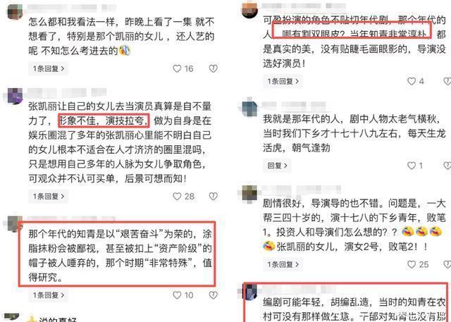 张可盈刚在央视的《依依向北风》中,被网友狠狠吐槽了。 表示,顶着苍蝇腿睫毛、浓妆艳抹的妆容,来演知青,够浮夸的。 甚至,连累了她的母亲张凯丽。